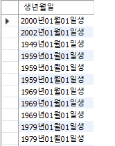 맨 앞 컬럼에 주민등록번호라고 치면, 옆에가 19 일지 , 00일지가 잘려서 삽입돼있다.