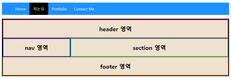 header , nav , section , footer에 테두리를 주고 색을 지정했다.