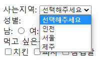 만약 사는 지역과 성별, 먹고 싶은 음식을 고를 페이지를 만들어보자면