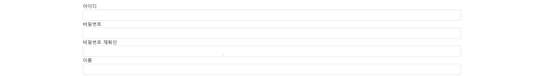 아이디 , 비밀번호 , 비밀번호 재확인 , 이름 칸을 만들고 부트스트랩 클래스인 form-control을 적용시켰다.