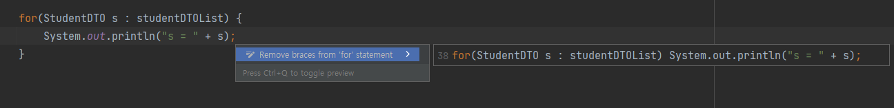 오류, 경고와 제안이 없는 코드에서도 Alt + Enter를 사용할 수 있다.