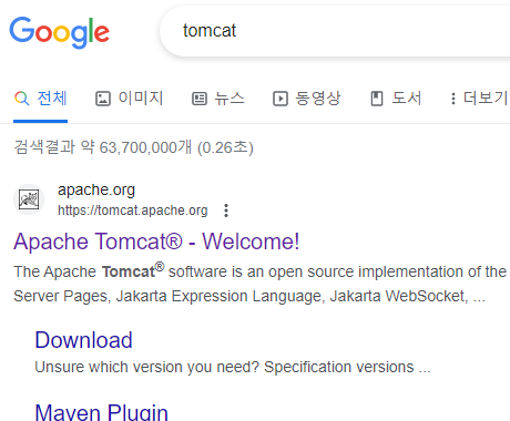 서버를 열기 위해 Tomcat 을 다운로드해야 한다.