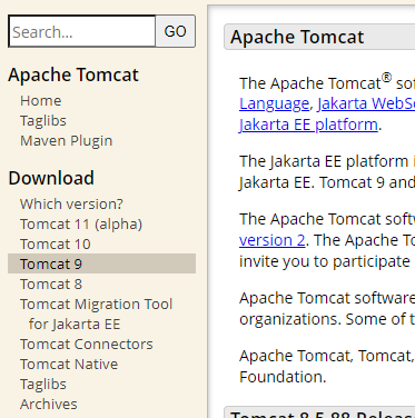 최신버전도 많지만 제일 대중적인 Tomcat 9를 다운로드할 것이다.
