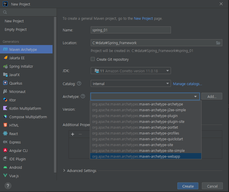 Generators에서 Maven Archetype 선택