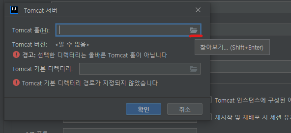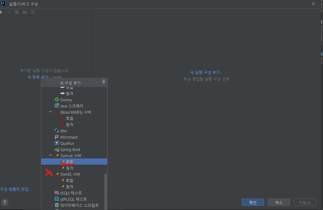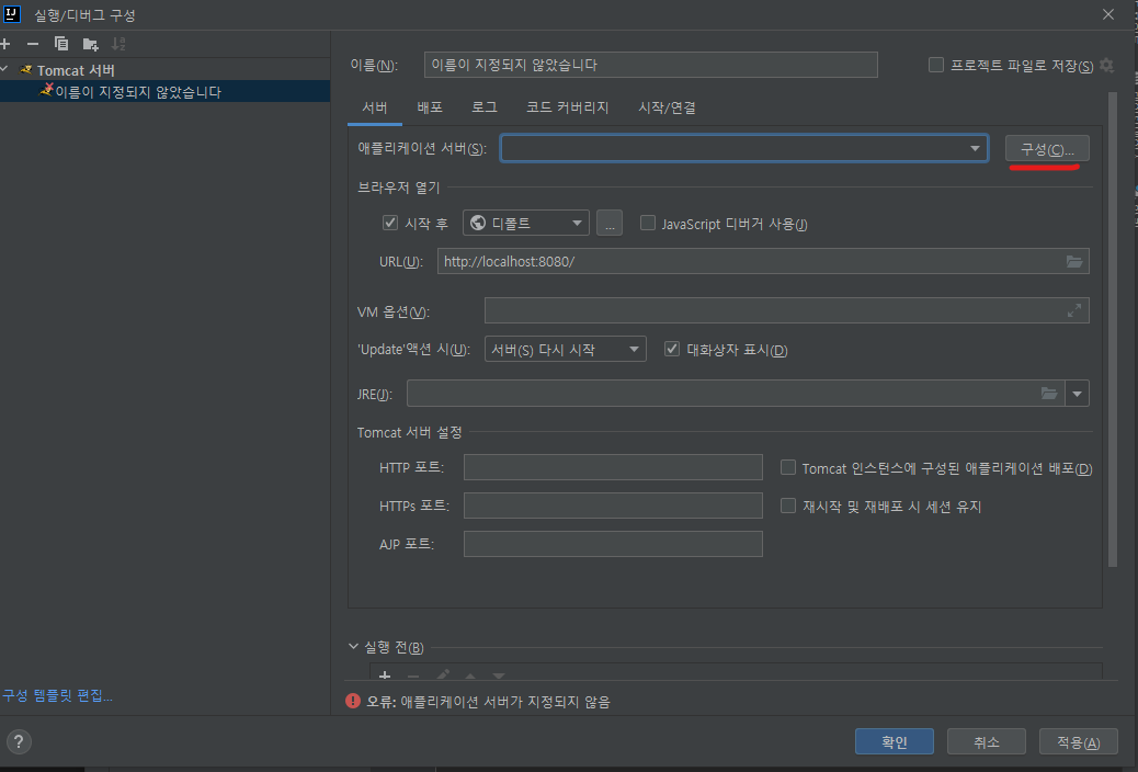 Tomcat 서버의 로컬을 선택