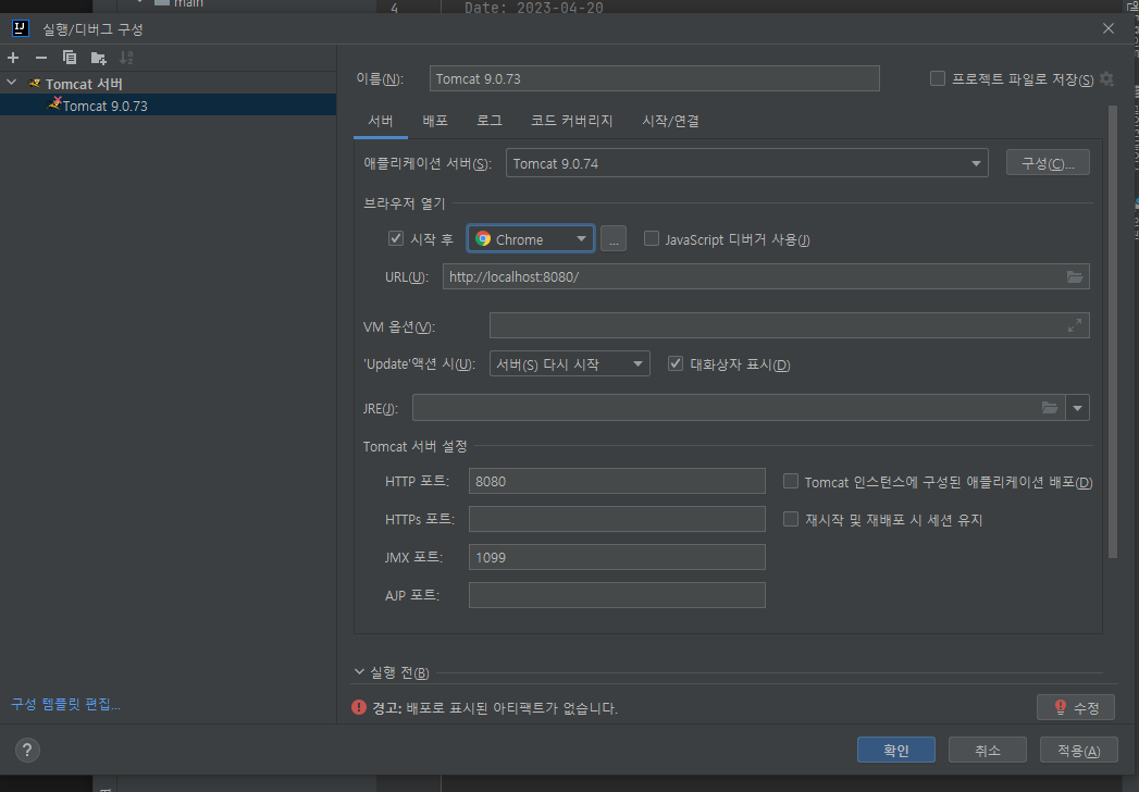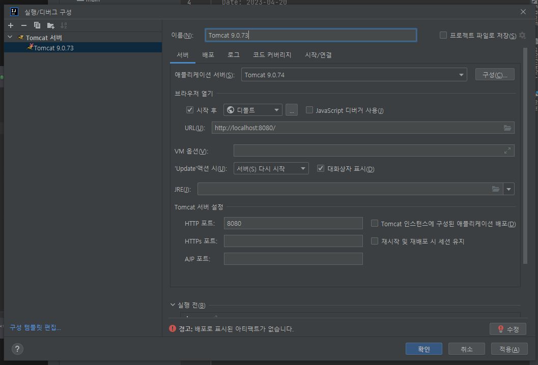 Tomcat 선택 후 실행