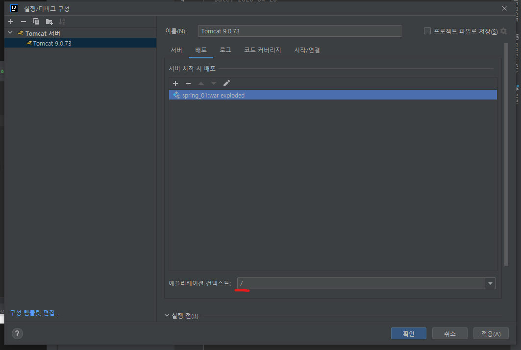 여기서 애플리케이션 컨텍스트를 / 로 해준다.