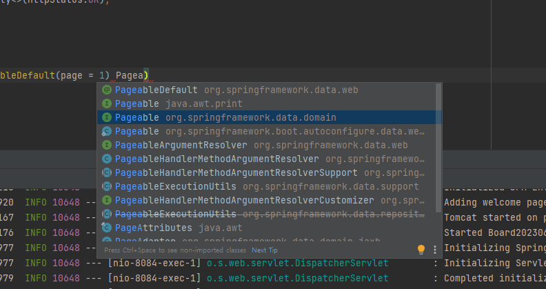 Pageable에 java를 import하는것이 아닌 위에 체크되있는 부분을 import한다.