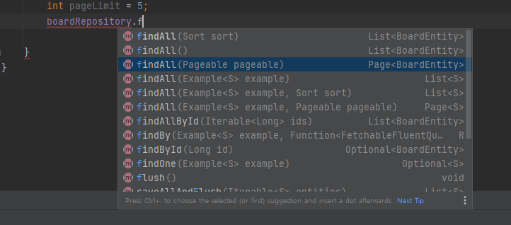 boardRepository.findAll(PageRequest.of(page,pageLimit,Sort.by(Sort.Direction.DESC,"id")));
