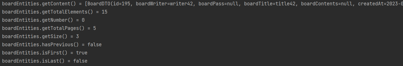 System.out.println("boardEntities.getContent() = " + boardEntityPage.getContent()); // 요청페이지에 들어있는 데이터