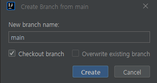 CheckOut을 선택하지 않으면 branch는 만들어지고 main에서 개발되어지는 수 가 있다.