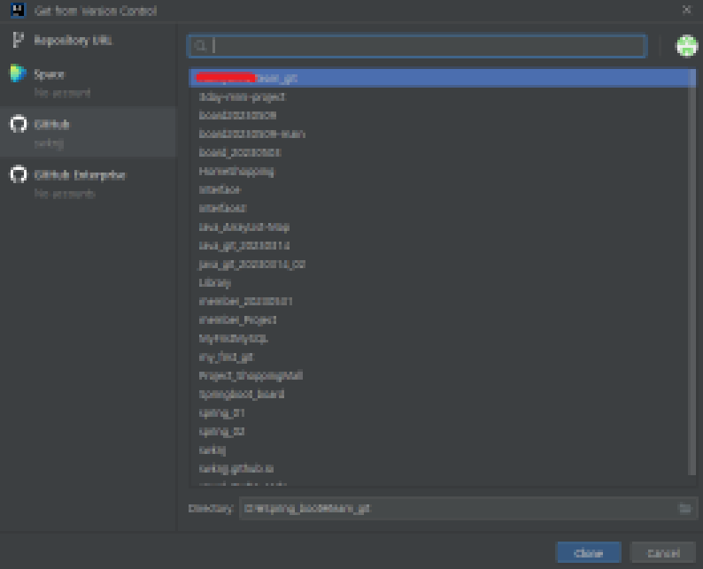 - 공유받은 이휴 intelliJ에서 해당 Repository를 Clone하여 로컬에서 개발 시작
