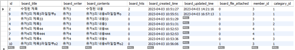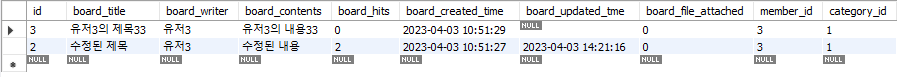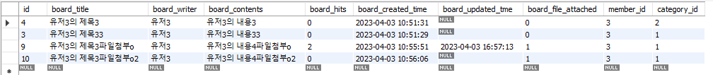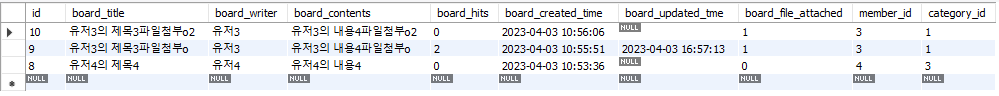 3번 회원이 첫 번째로 작성한 글이 board_table의 id. 가 2번이기 때문에