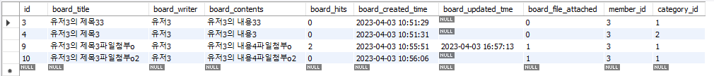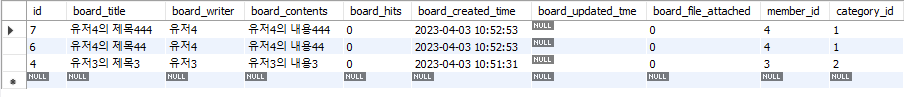 4번 회원이 첫 번째로 작성한 글이 board_table의 id가 5번이기 때문에