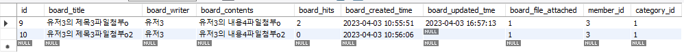 파일 첨부가 된 게시글은 board_table에서 id = 9 , id = 10에 해당하기에 id = 9번의 조회수를 올렸다.