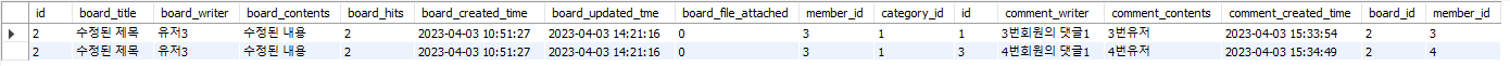 comment_table의 board_id와 member_id는 foreign key로 이어져 있다.